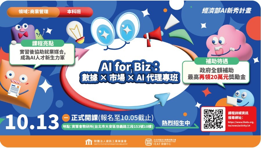 七、「AI for Biz:數據 x 市場 x AI代理」、「AI數位轉型顧問培育專班」招生簡章如附件。